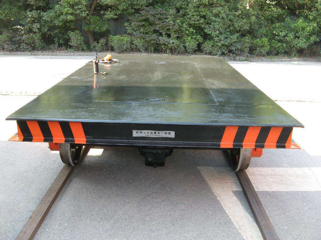 Battery powered electric flat car with DC traction motor for railroad construction and maintenance is a rail flat car powered by a battery. The battery is installed inside the flat car. The power supply provides power to the DC traction motor through the electrical control system to control the start, stop, forward and backward of the flat car. , speed regulation, etc. This series of flat cars can be used in S-shaped track, curved track, flammable and explosive, and ferry occasions; hydraulic or mechanical lifting systems can be installed on the platform of the flat car; automatic remote control can be realized.